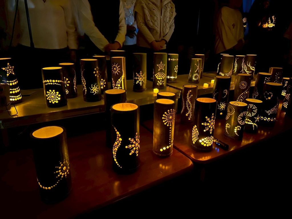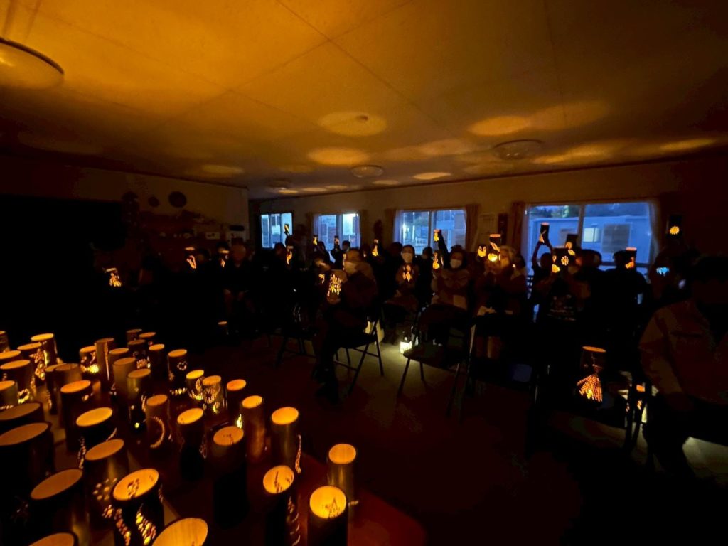 最終日は、由比ヶ丘団地集会所に集まり「点灯式」のミニイベント。竹灯ろうの中にLEDランプを入れ、温かく揺らぐオレンジ色の光を見ながら、ゴスペル音楽に包まれました。